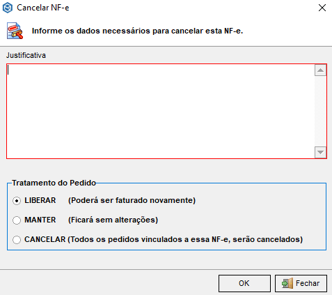 10 – Em cancelar devemos descrever o motivo do cancelamento.