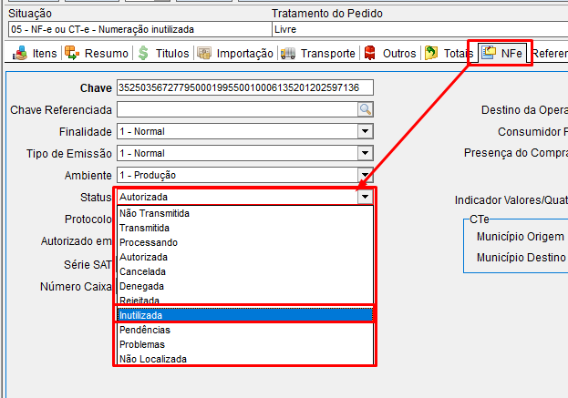 8- Em consultar podemos verificar se a nota está autorizada para uso, o sistema irá consultar o status da nota na sefaz.