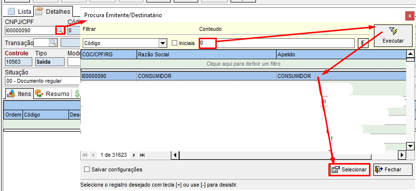 Caso 2 – Não possua documento, então incluímos um com código de participante 0, informamos manualmente o numero da nota e fazemos como anteriormente.