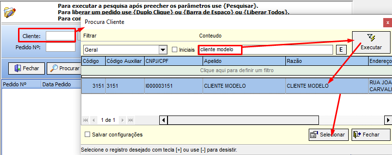2 –  Clicamos F3 no nosso teclado no campo do cliente, buscamos por ele.
