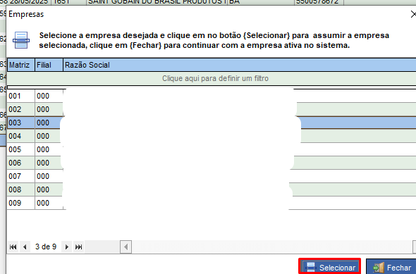 4 – Agora selecionamos a empresa e clicamos em selecionar.