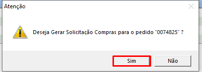 10 – Irá aparecer todos os itens que tiveram a solicitação de compra do pedido.
