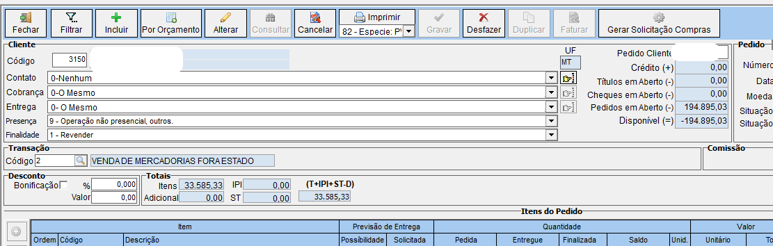 Nesse artigo você encontrará opções do pedido de vendas, para ser redirecionado a opção que você deseja ver clique em algum dos links abaixo: